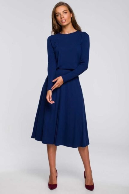 Für viele Anlässe geeignet ist dieses blaues elegantes Kleid mit Chiffonschal vom Modelabel Style. Sie können es bei einem Abendessen wie auch als stilvolles Businesskleid tragen. Dazu passen Pumps