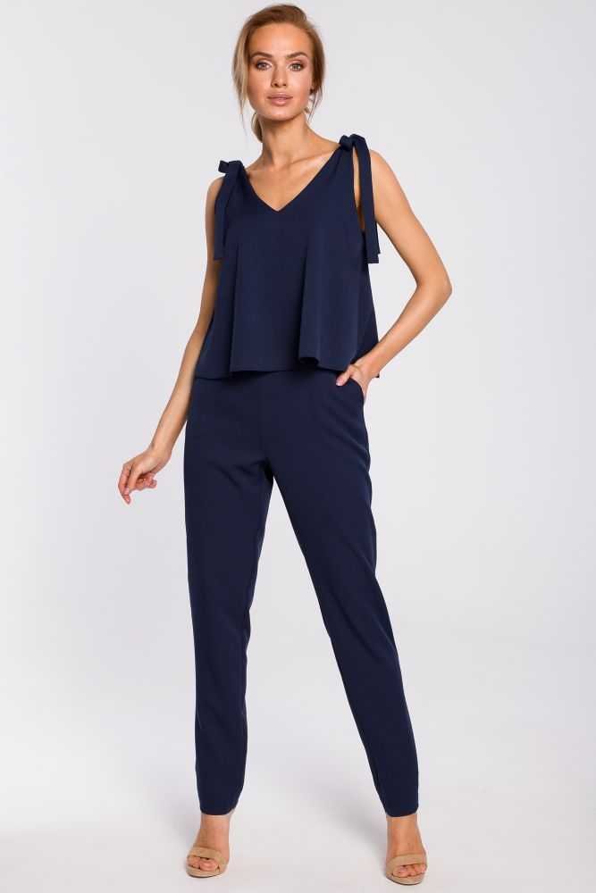 Unwahrscheinlich chic und eine schöne Alternative zu einem Sommerkleid ist dieser Eleganter Damen Jumpsuit in Marine. Geeignet für die City, das Business sowie für ein abendliches Event