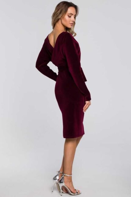 Langarm Samt Wickelkleid in Bordeauxrot Größe S