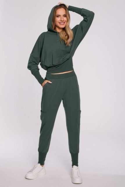Hoch geschnittene grüne Stoffhose mit weitem Bein Gr. S